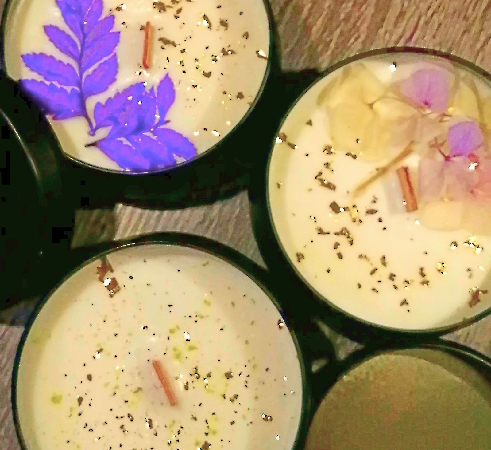 - Componentes: cera de soya 100% natural, aroma, pabilo de madera, elementos decorativos