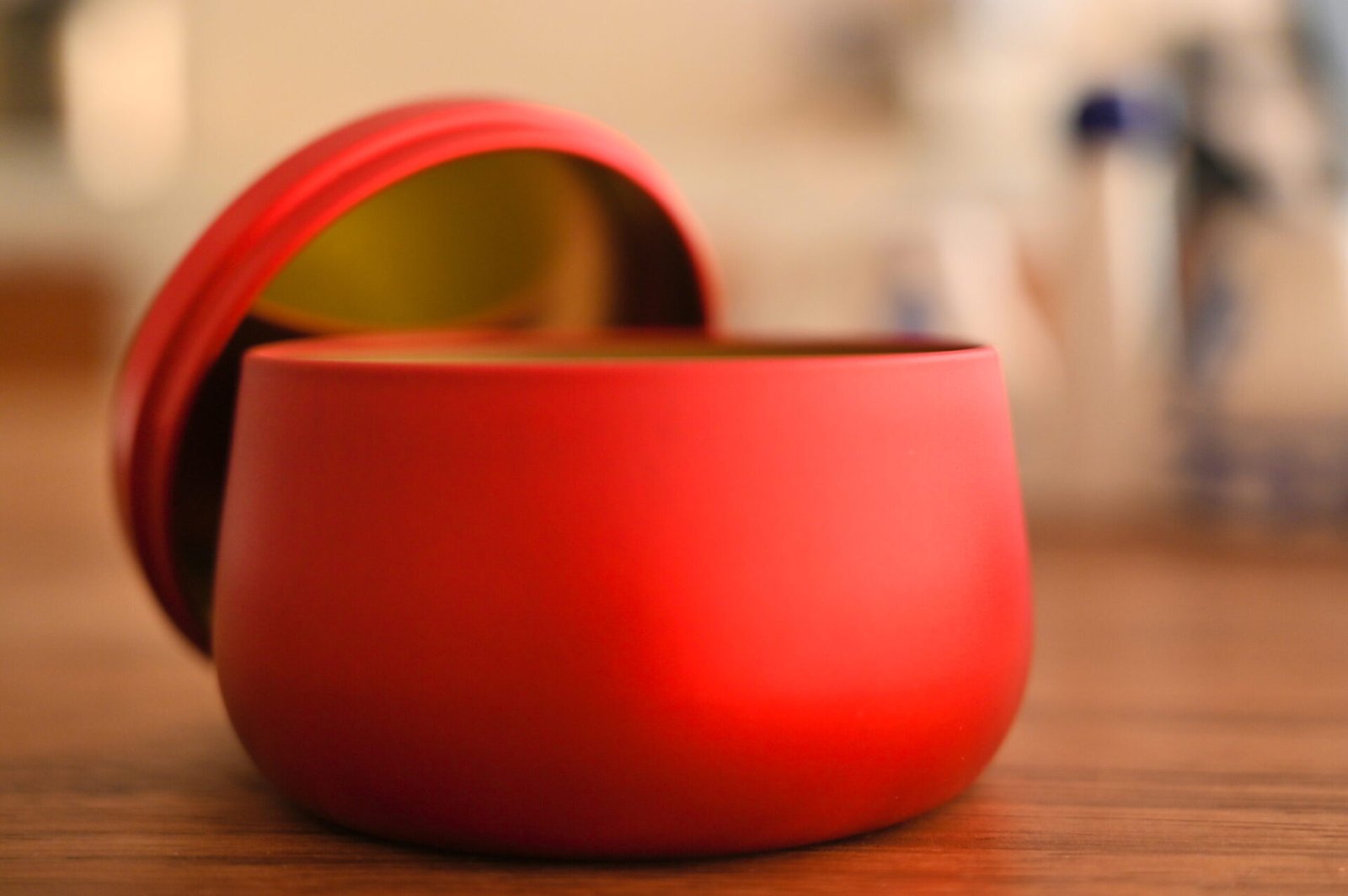 - Recipiente: Envase metálico con tapa. Exterior negro e interior dorado. Aprox. 9 cm ancho y 5,5 cm de alto